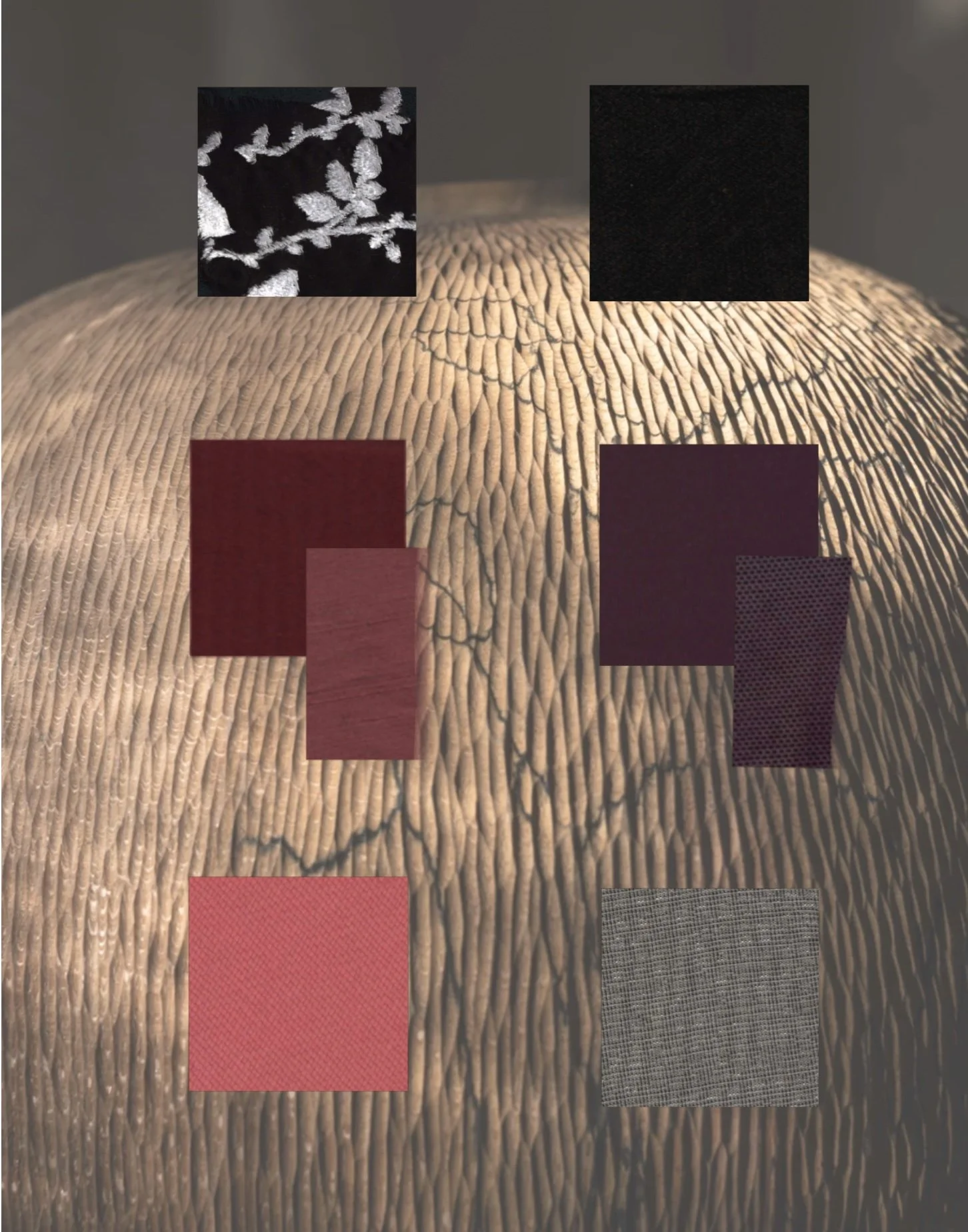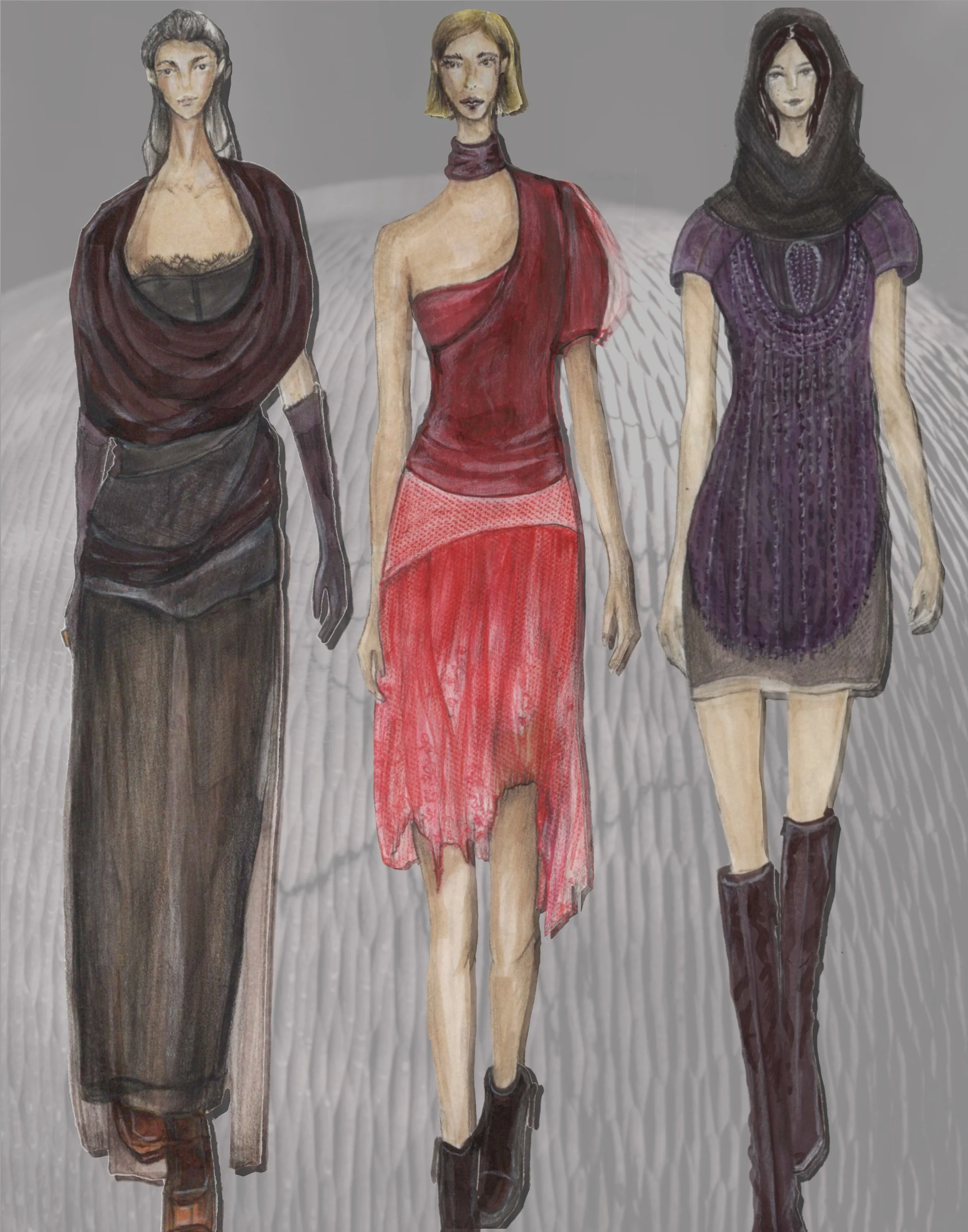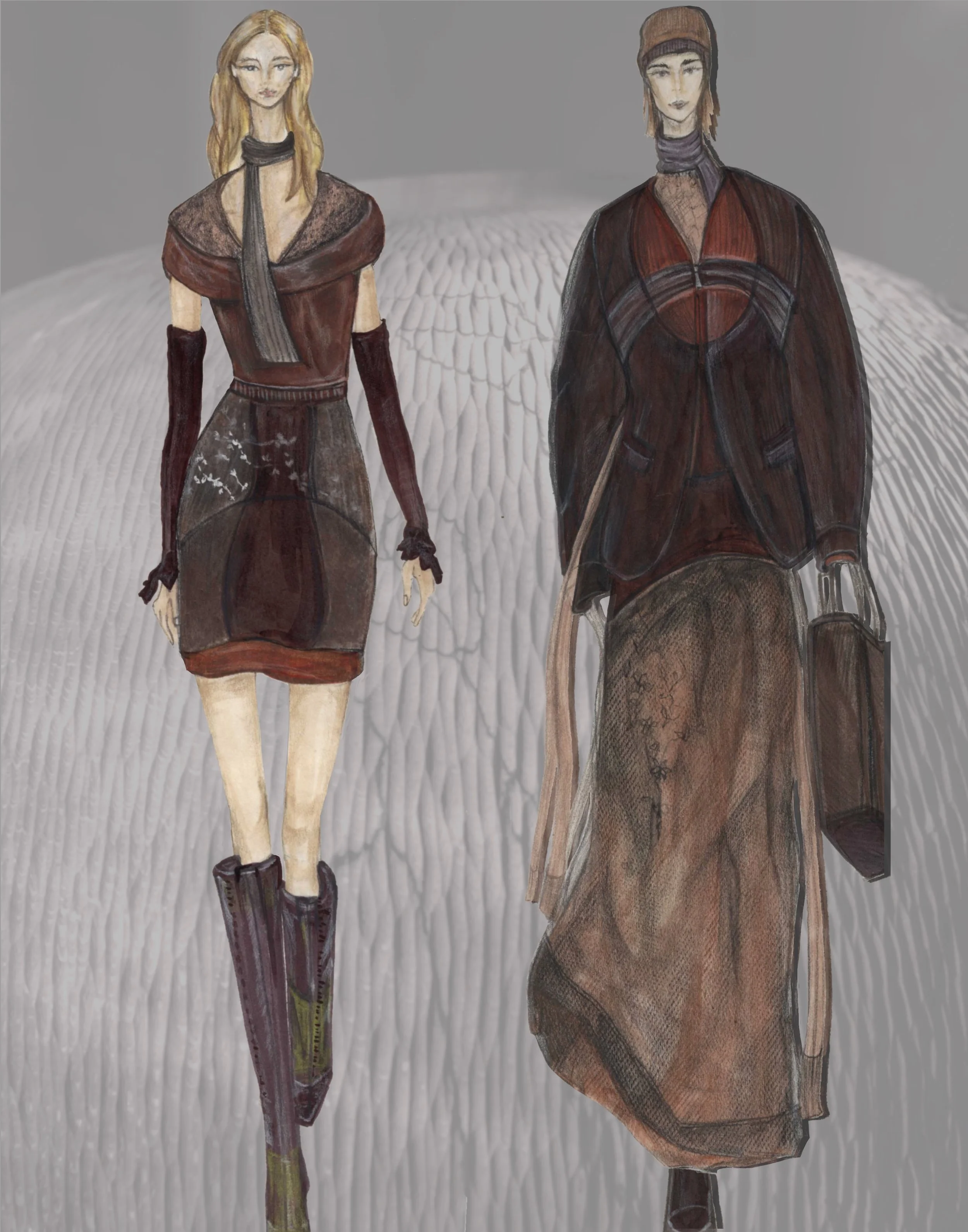 Inspiration came from a sculpture made out of wood using the texture of this object and the natural details that seemed to have been split in it to incorporate it into clothing.