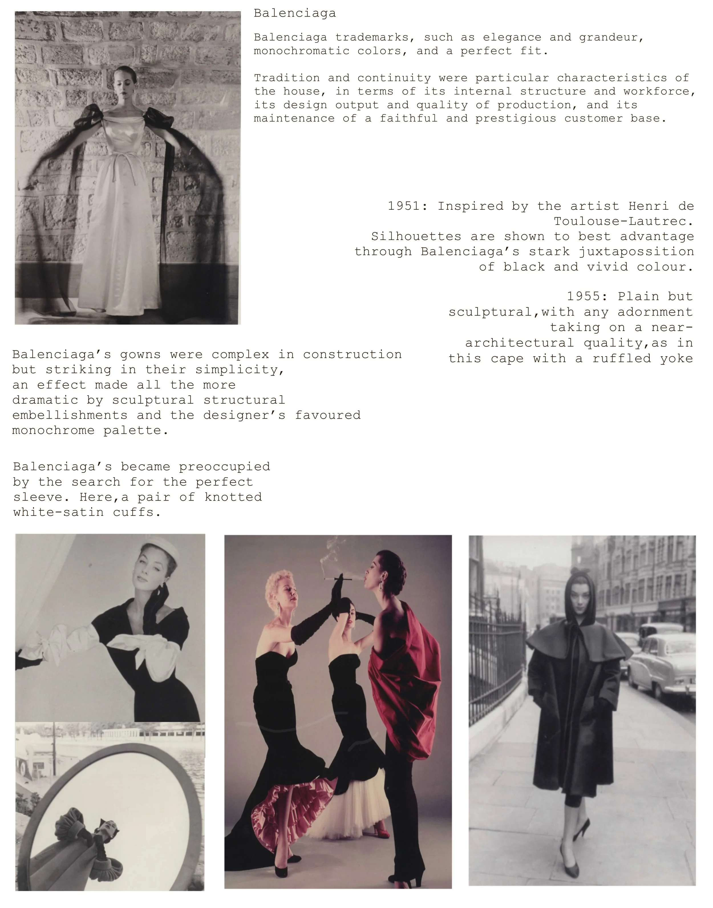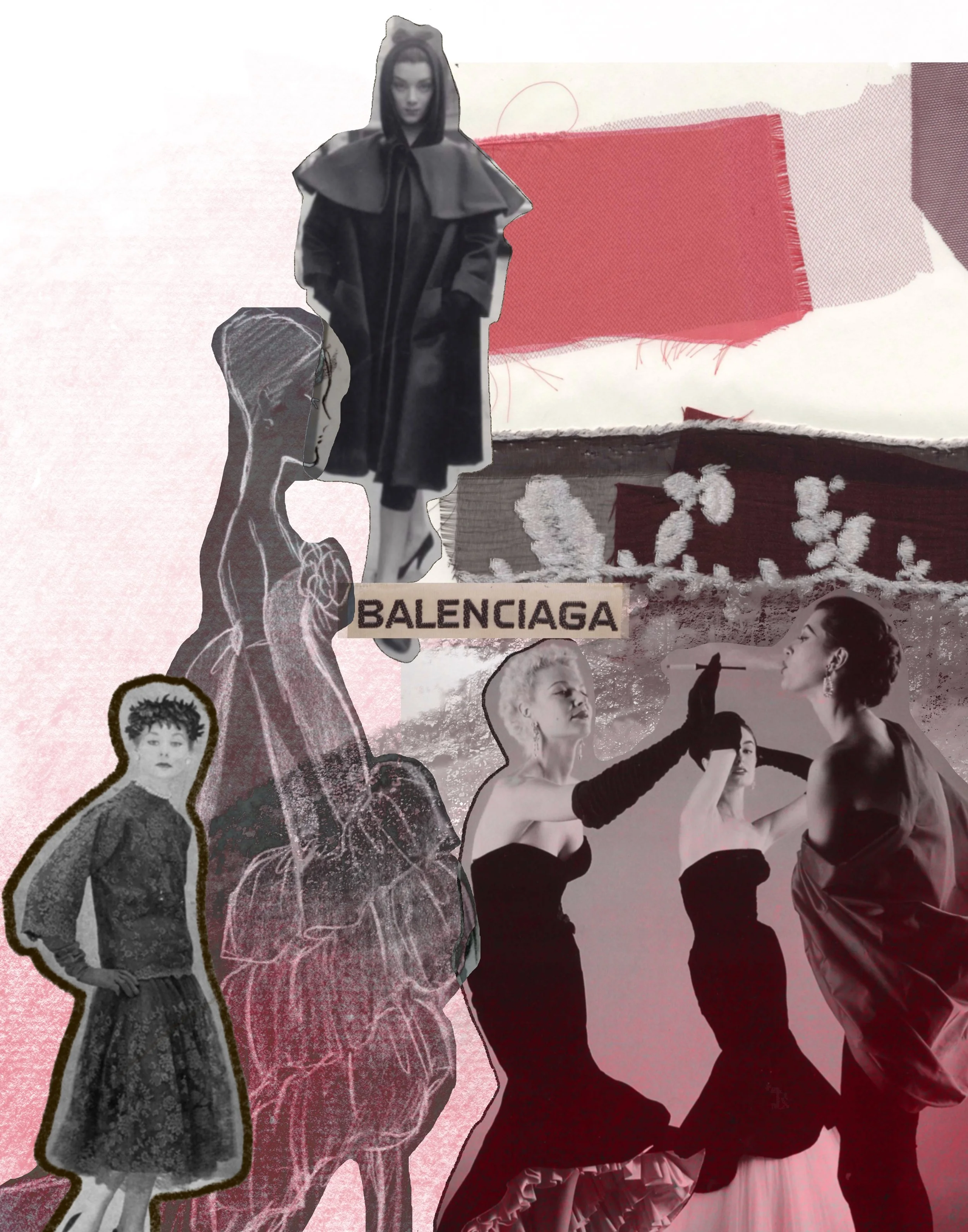 This project was continued based on the design house Balenciaga’s historical research, creating new season collection evening dresses, daytime looks included.