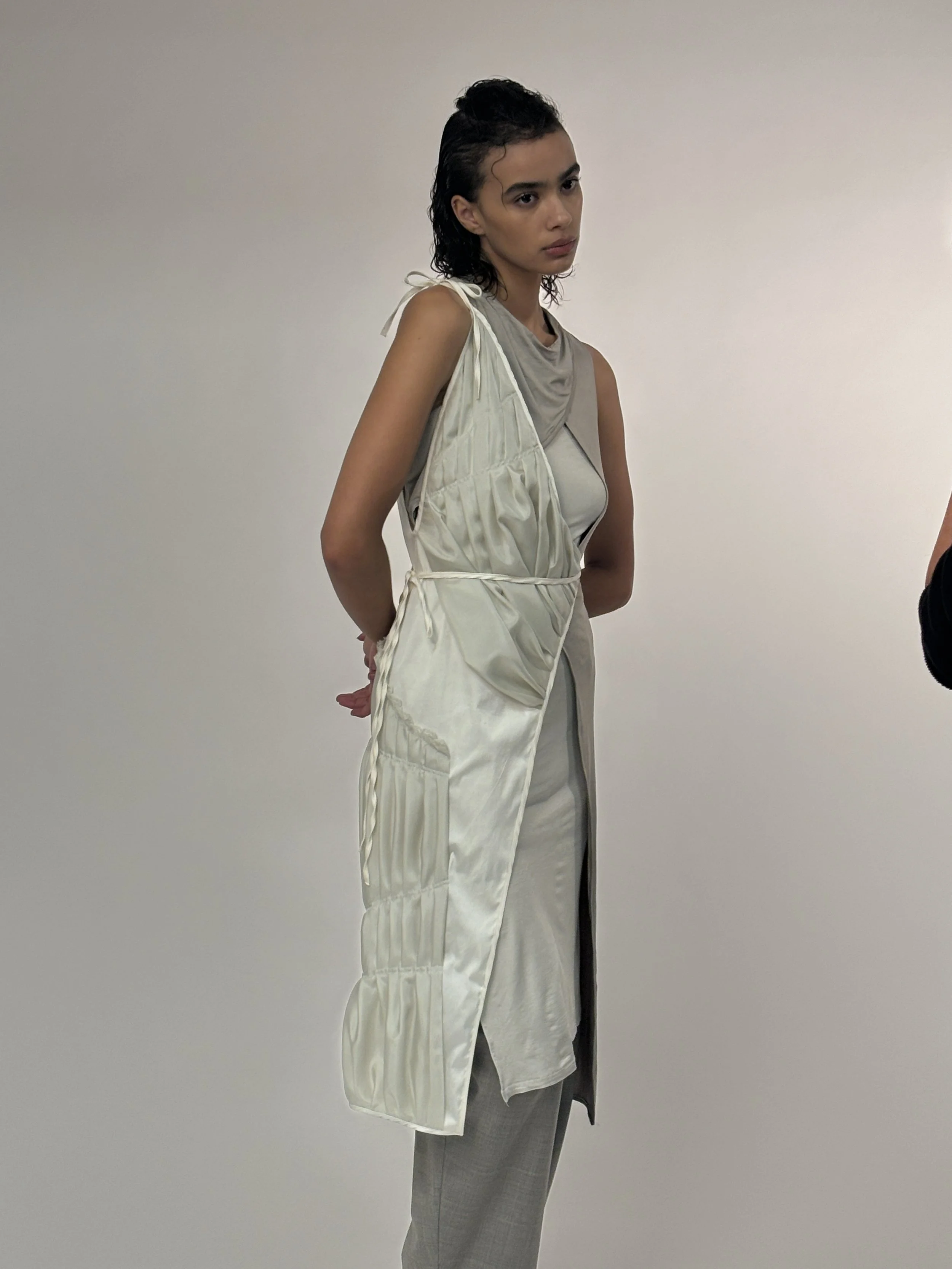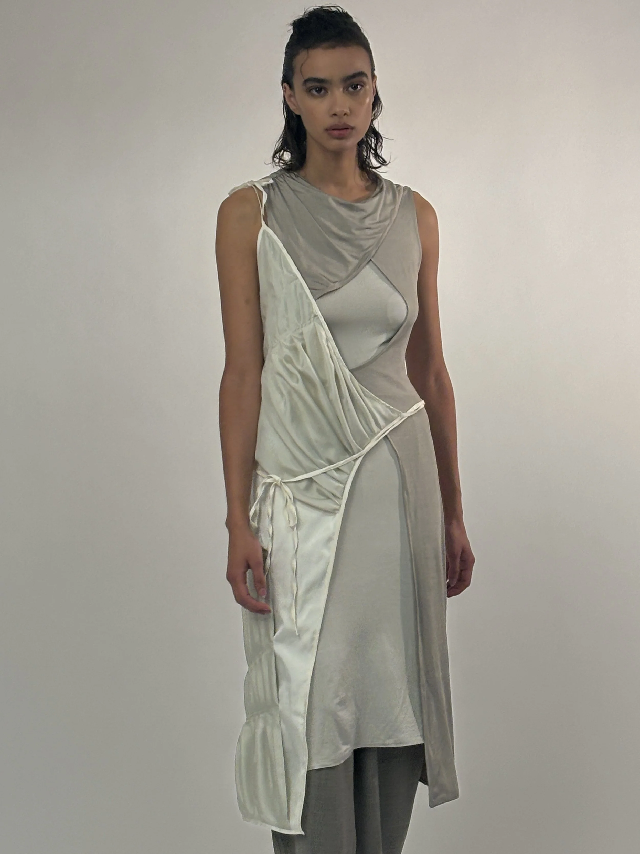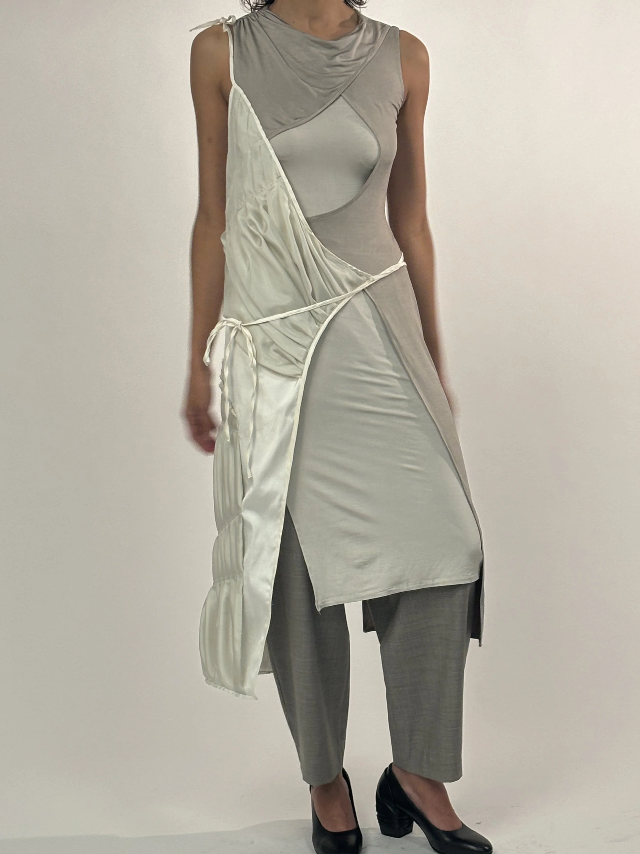 SILK ASYMMETRIC APRON DRESS