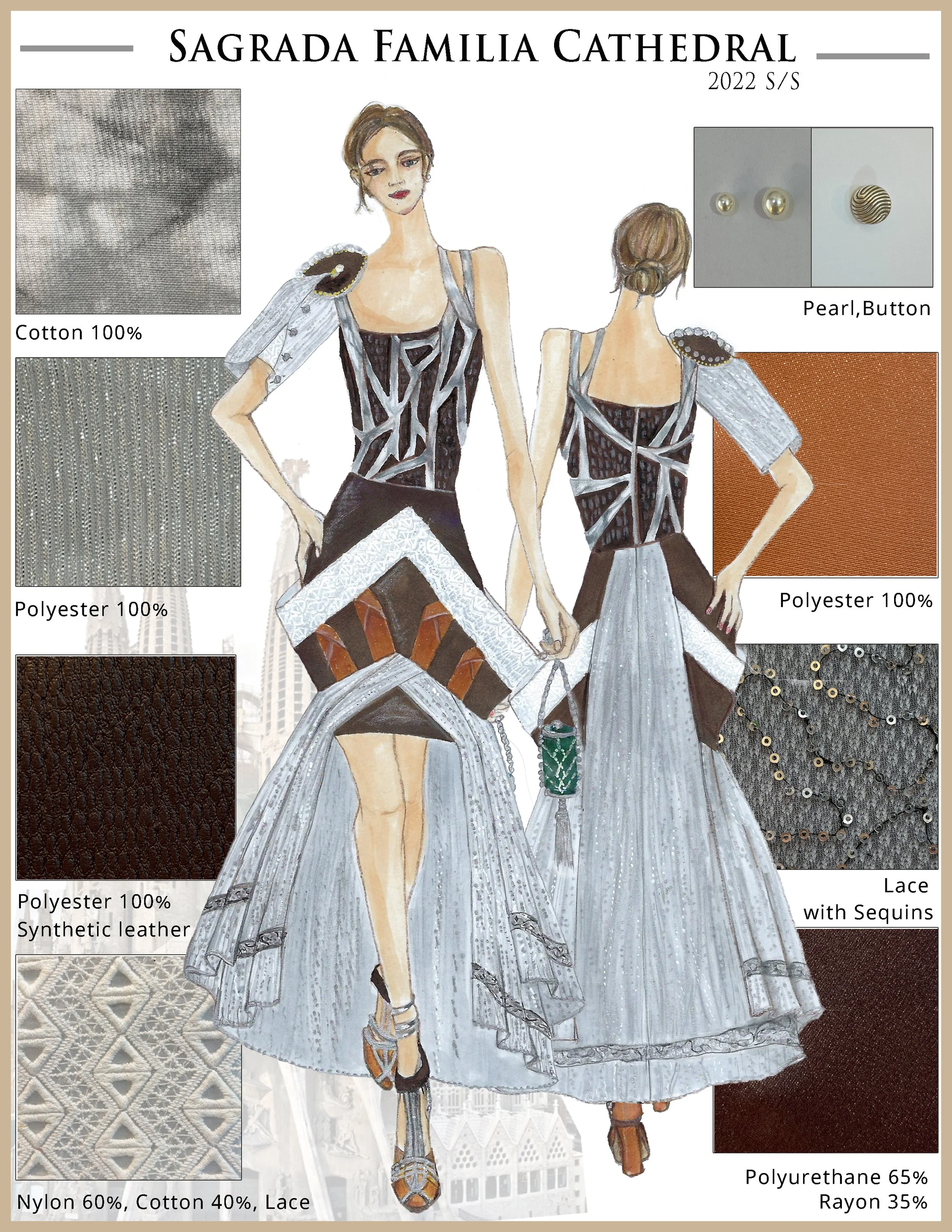 exterior of ‘Sagrada Família,’ and a top which is made of a pattern that captures the